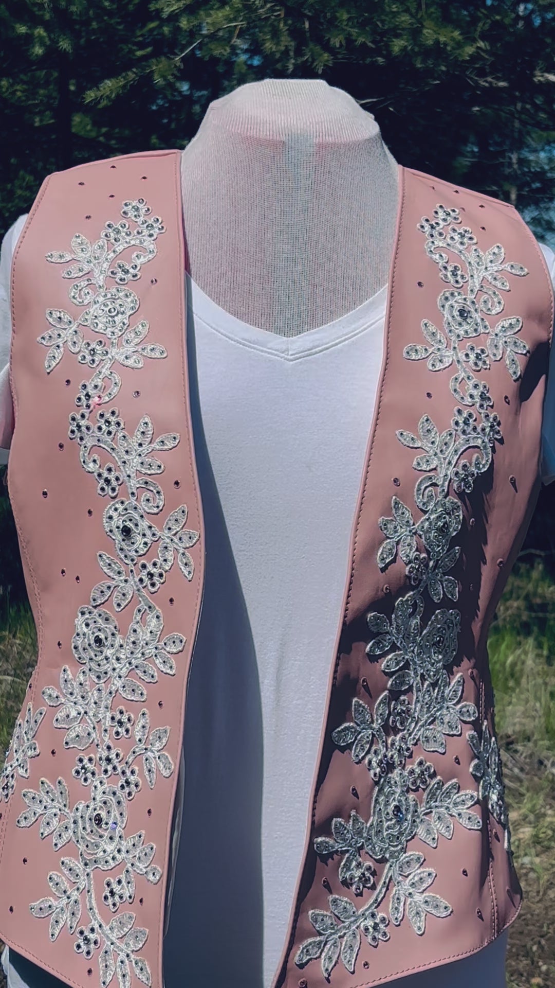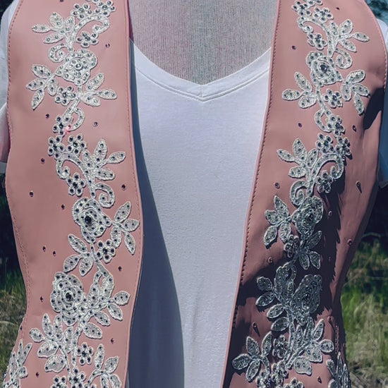Lambskin leather vest with appliqués and Preciosa crystals